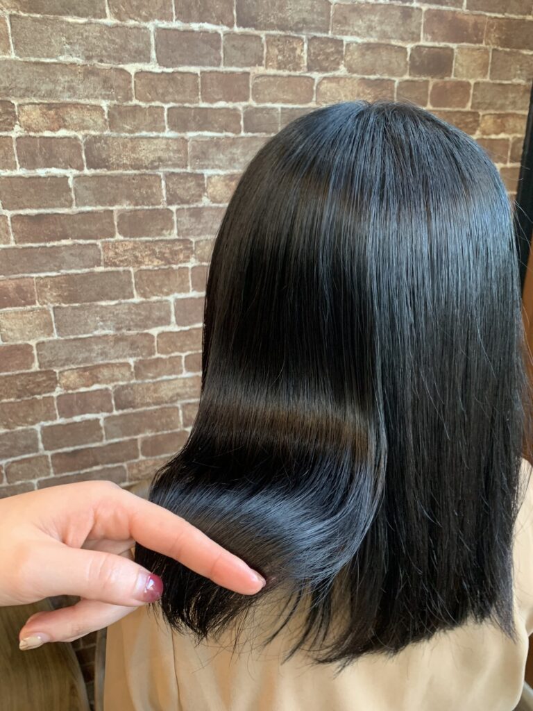 先日担当させていただいたお客様の髪の毛を当店おすすめのトリートメントでつるんつるんに仕上げました!